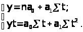 В цій системі рівнянь у – фактичні рівні ряду динаміки, n – кількість рівнів ряду динаміки (у нашому прикладі їх 12).