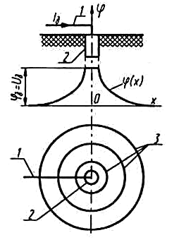 Выравнивание потенциалов корпусов электрооборудования и связанных с ним конструкций и основания осуществляется устройством контурного заземлителя, электроды которого располагаются вокруг здания или сооружения с заземленным или зануленным оборудованием. Внутри контурного заземлителя под полом помещения или площадки прокладываются горизонтальные продольные и поперечные электроды, соединенные сваркой с электродами контура. При наличии зануления контур присоединяется к нулевому проводу.