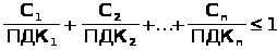 При одновременном содержании в воздухе рабочей зоны нескольких вредных веществ однонаправленного действия сумма отношений фактических концентраций каждого из них (С1, С2,..., Сп) в воздухе помещений к их ПДК (ПДК1, ПДК2, ПДКn) не должна превышать