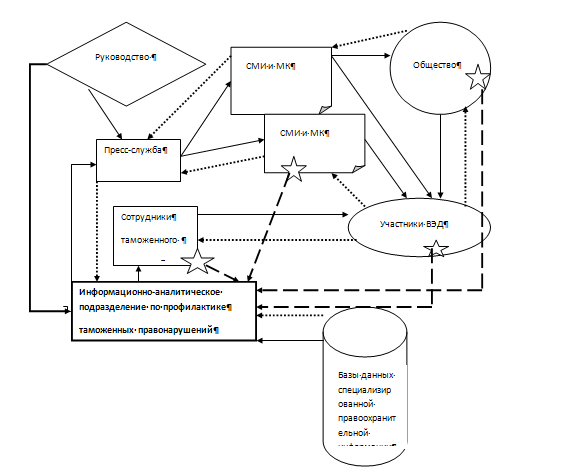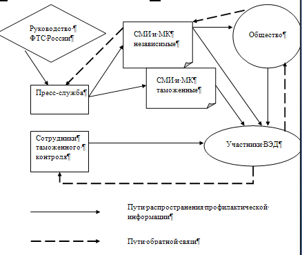 Принципиальное отличие предложенной выше модели информационного процесса в том, что распространяемая таможенными органами информация по предупреждению правонарушений, по мнению автора, управляемо воздействует (или должна воздействовать) в первую очередь на определенную часть общества - его страту, обозначенную на схеме как «участники ВЭД» (участники внешнеэкономической деятельности).