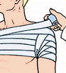 4. наложить давящую повязку Накладывают давящую повязку (желательно стерильную) из бинта или чистой проглаженной несинтетической материи. Начало бинта фиксируют на конечности левой рукой, а правой, натягивая, разматывают бинт слева направо. Сначала накладывают 2-3 круговых фиксирующих тура один на другой. Затем туры бинта ведут в косом (спиральном) направлении, на 1/2 или на 2/3 прикрывая предыдущий ход. Повязку лучше накладывать сверху вниз и завязывать на более тонкой части конечности. После этого поврежденную ногу или руку надо уложить выше уровня груди пострадавшего. Это положение дополнительно способствует уменьшению отека, остановке венозного кровотечения. |