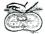 Заметив, что грудная клетка приподнимается во время искусственного дыхания, прикоснитесь двумя пальцами к адамову яблоку. Переместите пальцы в углубление между адамовым яблоком и мышцей на боковой стороне шеи. В течение 5—10 секунд пытайтесь нащупать пульс. |