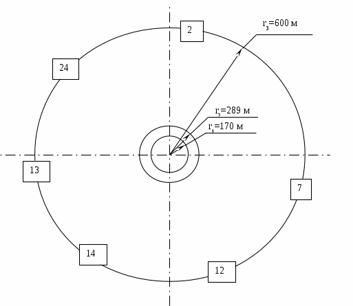 Расстояние от центра взрыва до рассматриваемых объектов r>3> – 600 м