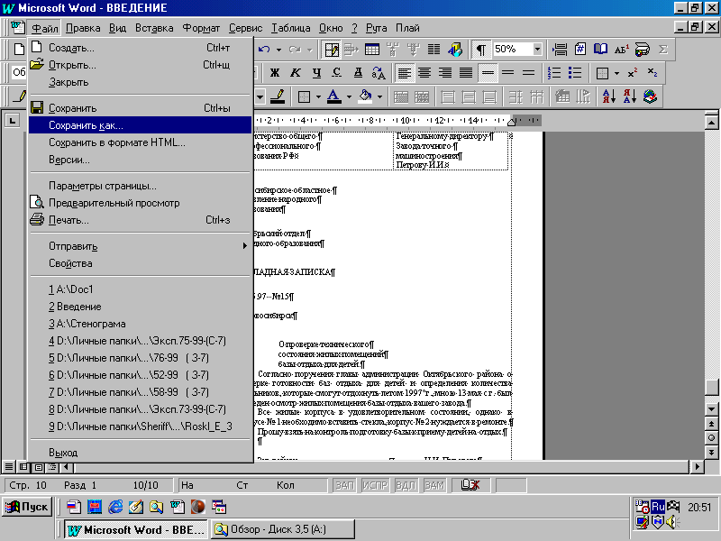 5. Л.А.Сысоева, Секретарское дело № 2/ 2002 «Работа с программой Microsoft Word» стр. 61-66.