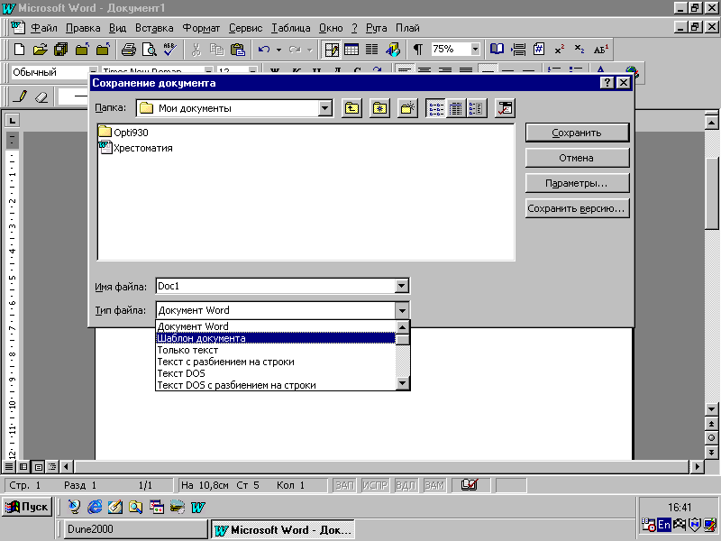 Выберите значение Шаблон документа в поле Тип файла. Это значение автоматически появится при сохранении файла, для которого при создании был установлен тип шаблона. (Рис.4)