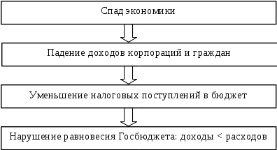 Другой источник государственного долга – это спады. В период, когда национальный доход сокращается или не может увеличиваться, налоговые поступления сокращаются и приводят к бюджетным дефицитам.