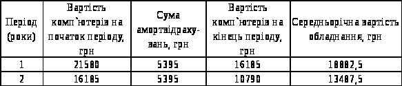 Сума амортвідрахувань А(2)= 21580 х 10 / 100 = 5395 грн.