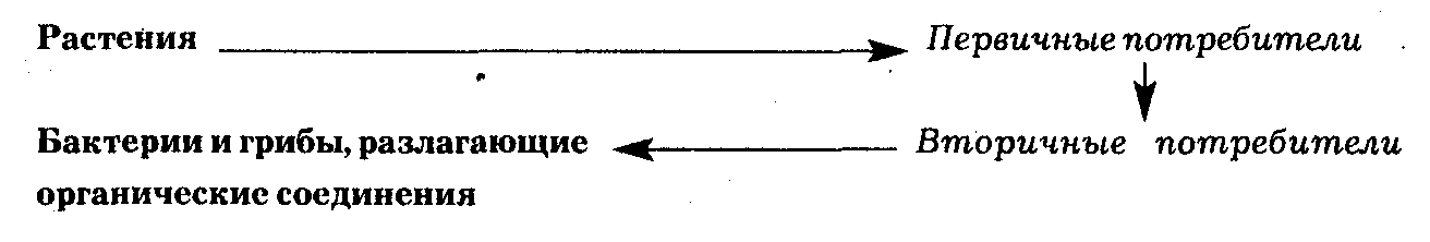 В зависимости от характера питания строится пирамида питания, состоящая из нескольких трофических уровней. Низший занимают автотрофные организмы, питающиеся неорганическими соединениями, прежде всего растения. На более высоком уровне располагаются гетеротрофные организмы, использующие в пищу биомассу растений. Затем идут гетеротрофы второго порядка, питающиеся гетеротрофами первого порядка, т. е. травоядными животными и т. д.