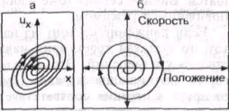 Эволюцию динамических систем во времени оказалось удобным анализировать с помощью фазового пространства — абстрактного пространства с числом измерений, равным числу переменных, характеризующих состояние системы Примером может служить пространство, имеющее в качестве своих координат координаты и скорости всех частиц системы Для линейного гармонического осциллятора (одна степень свободы) размерность фазового пространства равна двум (координата и скорость колеблющейся частицы) Такое фазовое пространство есть плоскость, эволюция системы соответствует непрерывному изменению координаты и скорости, и точка, изображающая состояние системы, движется по фазовой траектории (рис. 2) Фазовые траектории такого маятника (линейного гармонического осциллятора), который колеблется без затухания, представляют собой эллипсы