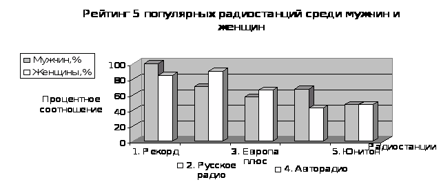 2. Популярность коммерческих радиостанций среди мужчин и женщин
