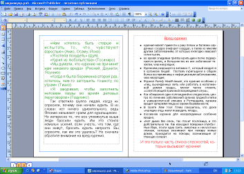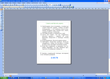 В практической части своей дипломной работы я хочу показать использование, оформление и для каких целей нужно применять буклет, а также какие программы верстки больше подходят для создания рекламного буклета. А также в моей дипломной работе описуется об тех программах компьютерной верстки которые наиболее подходят для создания и оформления рекламного буклета – наиболее подходящая программа для рекламного буклета – это Microsoft Publisher.