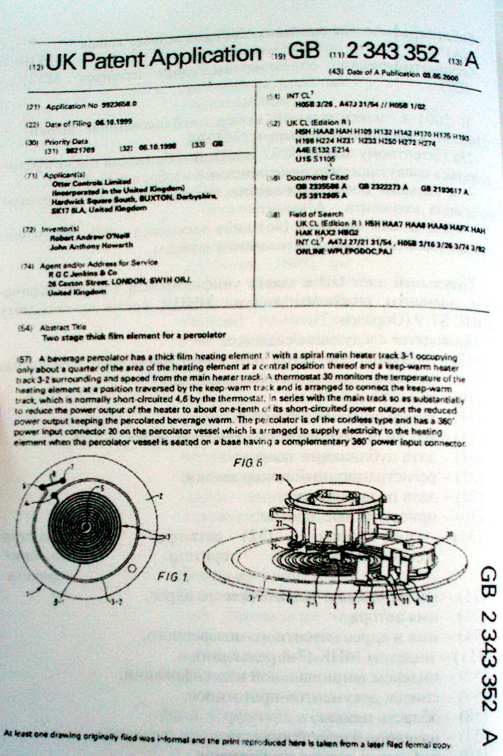 Для ответа на вопрос был выбран опубликованный патент Великобритании № 2343532, представленный на рисунке 1.