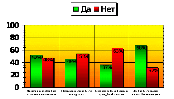 Уже сейчас бесспорно, что количество посетителей многих блогов сопоставимо с показателями зарегистрированных сайтов. Формально блоги являются средствами массовой информации, если исходить из таких критериев, как
