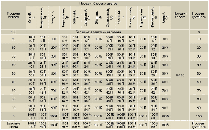 Таблица 4. Базовая таблица для создания шкалы цветового охвата