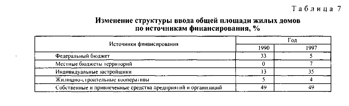 До перехода на рыночные отношения основными источниками пополнения жилого фонда страны являлись государственное жилищное строительство и строительство жилья предприятиями и организациями, кооперативное и индивидуальное строительство играло вспомогательную роль. В условиях сокращения бюджетного финансирования строительства и обеспечения населения жильем, основным источником средств для приобретения жилья становятся собственные средства населения, а также кредиты банков, как это происходит в большинстве экономически развитых стран мира.