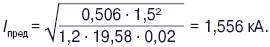 Анализируя формулы (1) и (2), можно заметить, что температура проводника зависит в первую очередь от величины тока в проводнике при КЗ и в несколько меньшей степени от времени его протекания. Решая эти формулы относительно тока, получим выражения для предельных значений токов КЗ Iпред, при которых возгорание проводника ещё не произойдет: