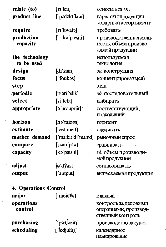 3. Operations planning is planning for production. First, design planning is needed to solve problems related to the product line, required production capacity, the technology to be used, the design of production facilities, and human resources. Next, operational planning focuses on the use of production facilities and resources. The steps in this periodic planning are (1) selecting the appropriate planning horizon, (2) estimating market demand, (3) comparing demand and capacity, and (4) adjusting output to demand.