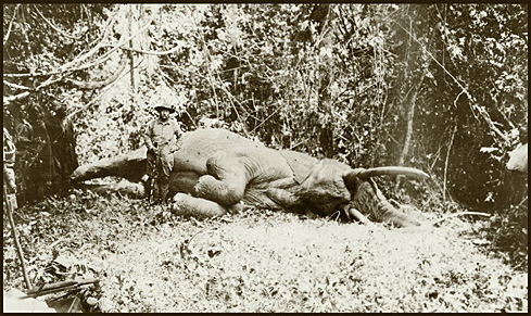 While on safari, Roosevelt wrote extensively about his African adventure. Scribner's magazine was paying him $50,000 for a series of articles, that appeared in 1910 as a book, African Game Trails. This photograph of Roosevelt with a bull elephant was used as an illustration.