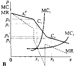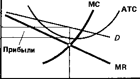 Крива попиту на продукцію окремої фірми х>i>d не є нескінченно еластичною, як це мас місце за досконалої конкуренції, тобто її крива матиме певний нахил, менший за нахил крипої ринкового попиту хd, а, отже, МR>i>, = AR>i>,. Це створює певні можливості для здійснення самостійної цінової політики в короткостроковому аспекті, отримувати економічний прибуток, оскільки фірма буде випускати таку кількість продукції, що забезпечує їй максимум прибутку згідно з випуску правилом (МR = МС).