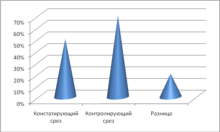 Констатирующий срез – 50%, контролирующий срез – 70%, разница – 10%.