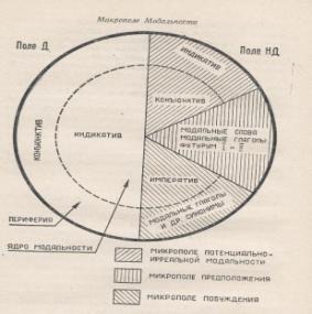 Поле НД занимает меньшее пространство, чем Поле Д, несмотря на это оно имеет сложную структуру. Оно делится на три микрополя: Потенциально-Ирреальное Микрополе, Микрополе Побуждения и Микрополе Предположения. Доминирующей частью Потенциально-Ирреального поля является конъюнктив, а именно его претеритальные формы. Доминирующей частью Микрополя Побуждения является императив. В составе того и другого микрополя есть и другие части, которые занимают периферийное положение. Особенностью Микрополя Предположения является то, что в его структуре отсутствует доминирующая часть и наблюдается разнообразие равноправных частей.