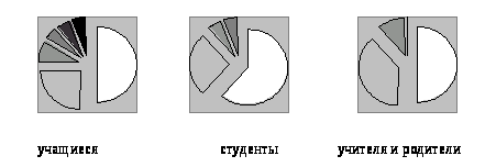 Ответы родителей и учителей: в школе их называли – 1) дети-40%, 2) ребята-40%, 3) пионеры, комсомольцы и октябрята-20%; в учебных заведениях – 4) уважаемые студенты-50%, 5) товарищи студенты-20%, 6) без конкретизации адресата (ВЫ)-30%.