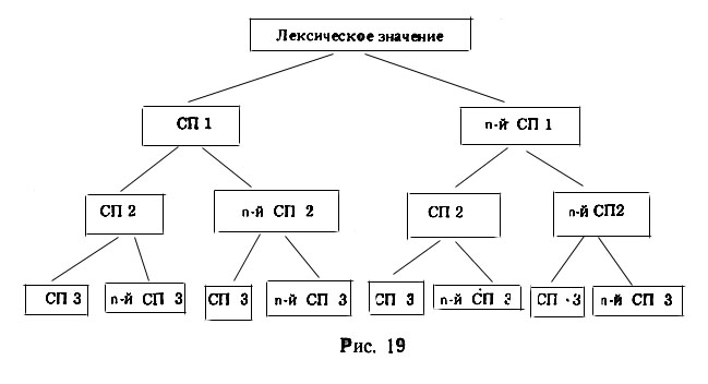 Для того чтобы построить конкретную семантическую модель интересующих нас слов, необходимо в статистически достоверном по объему тексте (текстах) зафиксировать все те элементы дистрибуции заданных слов, которые служат проявлением конкретных семантических признаков типа СП 3. Эти конкретные признаки обобщаются в семантические признаки типа СП 2, каждый из которых при этом получает характеристику своего веса на основании частот зарегистрированных в текстах словоупотреблений с этим признаком. Далее, эти семантические признаки объединяются в наиболее обобщенные признаки типа СП 1, представленные целым классом слов, занимающих определенную синтаксическую позицию в дистрибуции (совокупности сочетаний) исследуемого слова.