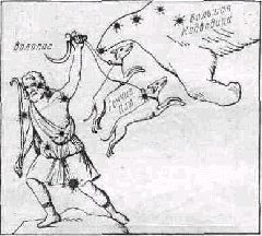 The Greek myth tells that nymph Kallisto has been transformed by jealous spouse Zevsa the Hero into a she-bear who was badgered on hunting by dogs by its own son Arkad (Volopas). Zevs has given Kallisto immortality, having placed it in the sky in the form of constellation of the Big Dipper. Near to the Big Dipper its persecutors - Volopas and Hounds Dogs (fig.2) are located also, but the constellation of Hounds of Dogs has appeared in the sky only in XVII century when the Ancient Greek myth has been added by companions of the hunter. In the Ancient Greece the constellation of the Big Dipper was called also as the Chariot what the Homere in "Odysseus" mentions.