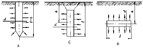 При заглибленні труби (стержня) нижче рівня поверхні (рис. 7.4, б) розрахунок ведеться за формулою:
