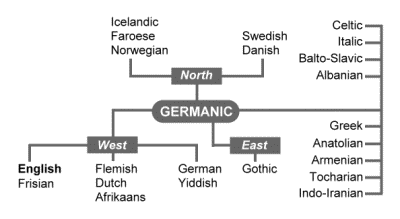 Англійська мова – це західно-германська мова, що походить від англо-фризьких діалектів, принесених до Великобританії Германськими завойовниками. Таблиця показує коротку хронологію Англійської мови, ілюструє основні моменти його розвитку.