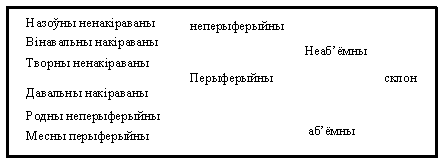 Значэнне накіраванасці змяшчае ўказанне на прадмет, на які скіравана дзеянне, і выражаецца формамі вінавальнага і давальнага склону імені . Значэнне перыферыйнасці канцэнтруецца ў форме імені, якое абазначае прадмет і мае ў выказванні не галоўнае, а пабочнае месца (у дадзеным выпадку – гэта творны, давальны і месны склоны імені). Аб’ёмнасць прыкметы паказвае мяжу ўдзелу прадмета ў дзеянні і выражаецца формамі роднага і меснага склонаў.