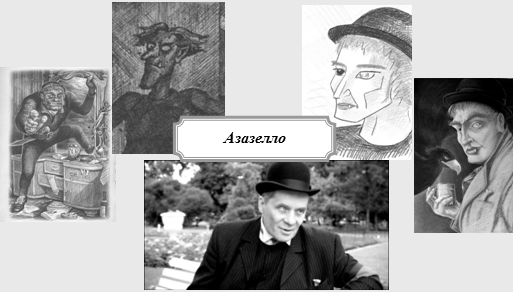 Азазелло – "демон безводной пустыни, демон-убийца". Вероятно, Булгакова привлекло сочетание в одном персонаже способности к обольщению и убийству. Именно за коварного обольстителя принимает Азазелло Маргарита во время их первой встречи в Александровском саду. Но главная функция Азазелло связана с насилием. Вот слова, которые он говорил Маргарите: "Надавать администратору по морде, или выставить дядю из дому, или подстрелить кого-нибудь, или какой-нибудь еще пустяк в этом роде, это моя прямая специальность…" Поясняя эти слова, скажем, что Азазелло выбросил Степана Богдановича Лиходеева из Москвы в Ялту, выгнал из Нехорошей квартиры дядю М.А. Берлиоза Поплавского, убил из револьвера Барона Майгеля. В данном случае простого портрета:
