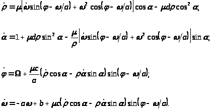 The set (3) is now normalized at the linear part approaching a standard form. First, the equations can be written as a system of four first-order equations
