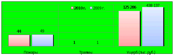 За 1 квартал 2010 года на предприятиях торговли города Москвы зарегистрировано 44 пожара, установленный материальный ущерб от которых составил 125 млн. 286 тыс. 735 руб. При пожарах травмирован 1 чел. (АППГ — 1).