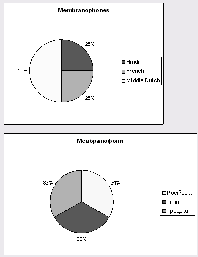 Рис. 2.1. Кількісні параметри походження англійських та українських музичних інструментів.