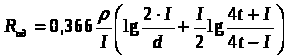 Сопротивление R>од > трубы заданного размера, используемой в качестве одиночного заземлителя и забитой в грунт с заданным удельным сопротивлением: