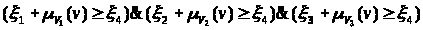 Иными словами, для любого значения параметра V число функций принад-лежности, одновременно не равных 0, не превышает двух. Пример такого случая показан на рис.1.