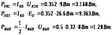 Зная выходное напряжение и ток, определим координаты рабочей точки согласно следующим формулам: