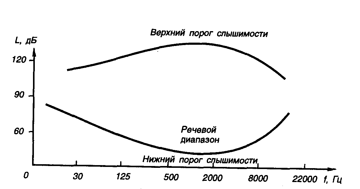 Рис. 2.13. Диаграмма области слухового восприятия