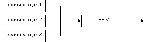 В данном курсовом проекте рассматривается задача о машинном моделировании процесса взаимодействия между тремя проектировщиками и центральной ЭВМ. Проводится анализ этой системы и формализация ее в терминах Q-схем, а также приведена программа моделирующего алгоритма и математическое описание системы. Проводится сравнительный анализ аналитического и имитационных методов исследования.