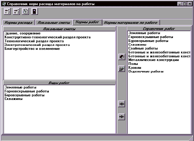 Справочник нормы расхода материалов на работы;