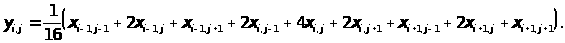 Другой принцип лежит в основе пирамидального кодирования. Пусть x(k,l) - исходное изображение. Получим из него его низкочастотную, с частотой среза f>1>, “версию” x>1>(k,l) с помощью локального усреднения с одномодовым гауссоподобным двумерным импульсным откликом. x>1>(k,l) можно рассматривать как предсказание для c. e>1>(k,l) = x(k,l) - x>1>(k,l) - ошибка предсказания, далее повторяем для частоты среза f>2>: e>2>(k,l) = x>1>(k,l) - x>2>(k,l) - ошибка предсказания меньше чем для e>1> в f>1>/f>2> раз. Получаем в итоге последовательность e>1> ,e>2> , .., e>t>. На каждой итерации размерность изображения сокращается в f>i> /f>i+1> раз. Данный метод уменьшает занимаемый размер в 10..20 раз при приемлемом качестве изображения. Но сложность алгоритма выше по сравнению с предыдущими методами.