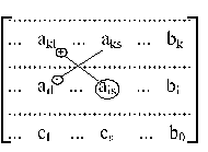 Определение. Элемент a>is>+ называется разрешающим, если преобразование матрицы с его помощью обеспечивает уменьшение (невозрастание) значения, целевой функции; строка и столбец, на пересечении которых находится разрешающий элемент, также называются разрешающими.