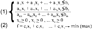 Здесь (1) называется системой ограничений , ее матрица имеет ранг r n, (2) - функцией цели (целевой функцией). Неотрицательное решение (х>1>0, x>2>0, ... , x>n>0) системы (1) называется допустимым решением (планом) ЗЛП. Допустимое решение называется оптимальным, если оно обращает целевую функцию (2) в min или max (оптимум).
