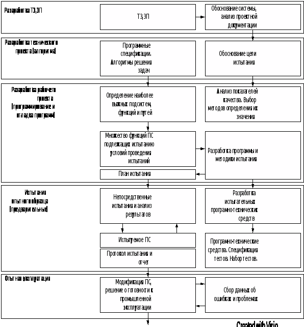 Рис. 3. Процессы тестирования и их связь с процессами проектирования.