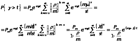Во введении мы уже говорили, что для задачи с ожиданием основной характеристикой качества обслуживания является длительность ожидания требованием начала обслуживания. Длительность ожидания представляет собой случайную величину, которую обозначим буквой . Рассмотрим сейчас только задачу определения распределения вероятностей длительности ожидания в уже установившемся процессе обслуживания. Обозначим далее через P t вероятность того, что длительность ожидания превзойдет t, и через P>k> t вероятность неравенства, указанного в скобке, при условии, что в момент поступления требования, в очереди уже находится k требований. В силу формулы полной вероятности имеем равенство