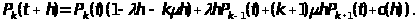 В момент t система находилась в состоянии E>k-1>, за время h поступило новое требование, но ни одно ранее находившееся требование не было закончено обслуживанием. Вероятность этого события равна