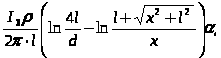 где I>3> – сила тока замыкания на землю, А; ρ – удельное сопротивление основания (грунта, пола и т.д.), на котором находится человек, Ом · м; l и d – длина и диаметр заземлителя, м; x – расстояние от человека до центра заземлителя, м; α – коэффициент напряжения прикосновения.