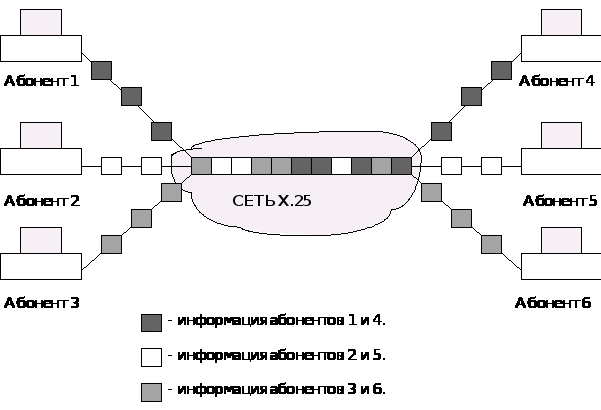 Альтернативой сетям с коммутацией каналов являются сети с коммутацией пакетов. При использовании пакетной коммутации один канал связи используется в режиме разделения времени многими пользователями - примерно так же, как и в Internet. Однако, в отличие от сетей типа Internet, где каждый пакет маршрутизируется отдельно, сети пакетной коммутации перед передачей информации требуют установления соединения между конечными ресурсами. После установления соединения сеть “запоминает” маршрут (виртуальный канал), по которому должна передаваться информация между абонентами и помнит его, пока не получит сигнала о разрыве связи[14]. Для приложений, работающих в сети пакетной коммутации, виртуальные каналы выглядят как обычные линии связи - с той только разницей, что их пропускная способность и вносимые задержки меняются в зависимости от загруженности сети.