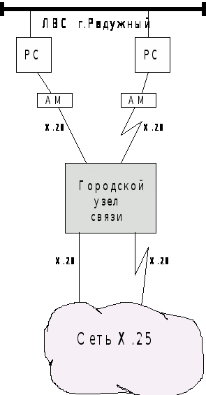Рис. 1.5.4. Подключение г.Радужный к сети Х.25